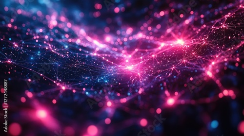 Abstract network data flow, glowing nodes, digital landscape, futuristic background, tech presentation