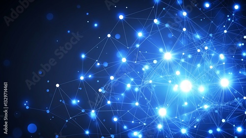 Abstract network graphic, glowing connections, dark background, futuristic concept