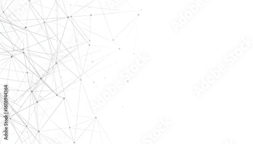 Abstract network graphic; nodes and lines form a complex web on a white background