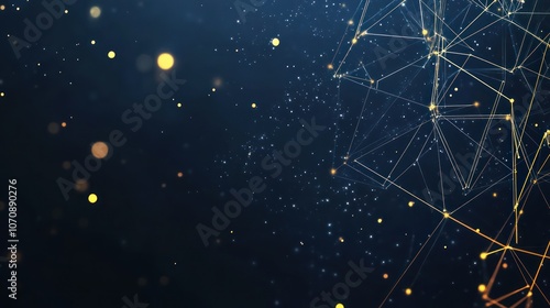 Abstract Network of Golden Lines and Points with Glittering Dust Particles