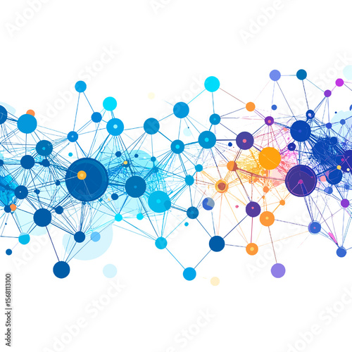 Abstract Network of Blue and Orange Dots and Lines on White Background Connecting for Futuristic Technology and Science Design