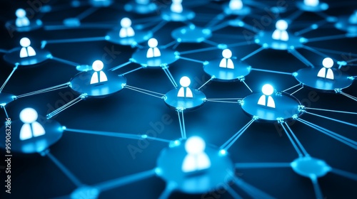 Abstract network of connected users in a digital environment, symbolizing communication and online interaction.