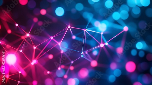Abstract network of glowing nodes and lines in pink and blue creating a futuristic feel