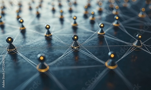 Abstract network of interconnected figures on a dark surface
