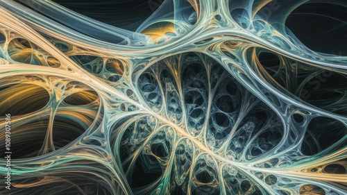 Abstract neural network art. Intricate fractal design evokes complex systems; symbolizes interconnectedness and the mysteries of the brain.