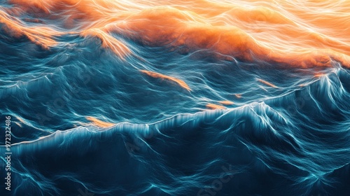 Abstract ocean waves illuminated by warm light, creating a serene and dynamic atmosphere.
