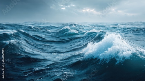 Abstract ocean waves with dynamic blue hues and soft light reflections, perfect for commercial design projects and creative backgrounds