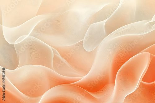 Abstract orange and white flowing shapes create a soft and ethereal background.