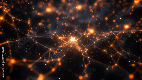 Abstract orange glowing network connections.
