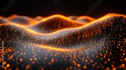 Abstract Orange Glowing Particle Wave Landscape