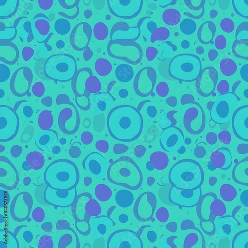 Abstract Organic Seamless Pattern: Bold, organic shapes in cool teal and purple hues create a dynamic, abstract pattern perfect for backgrounds, textiles, and digital designs.