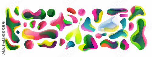 Abstract Organic shapes. Set of irregular liquid gradient blot form graphic elements. Amoeba gradient freeform om white background