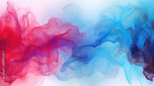 Abstract paint water. Color mist. Magic spell mystery. Blue red colors, contrast vapor floating splash cloud texture background banner illustration, Generative AI
