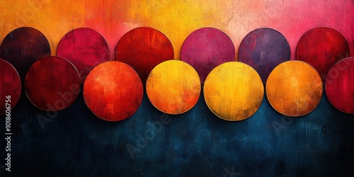 Abstract Painted Circles in Warm and Cool Hues Against a Dark Background