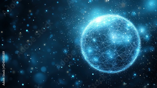 Abstract particle connection network with bright glowing particles linked by intricate lines, depicting the fast-paced, interconnected digital world of communication, data, and technology.