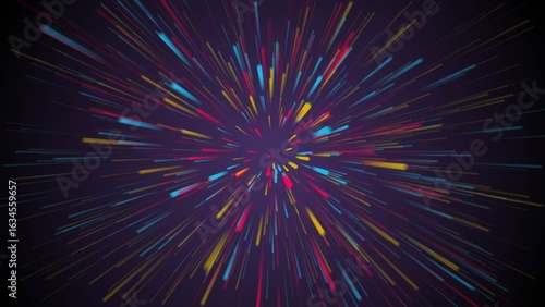 Abstract particle lines colorful rising awards stage on black background 4k illustration.