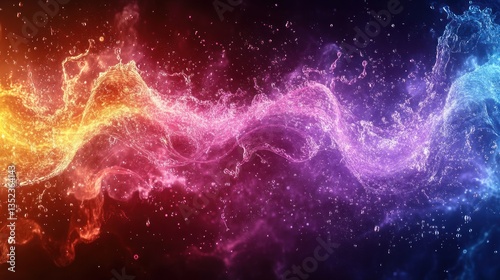 Abstract Particle Swirls Of Orange Purple And Blue Colors Against A Dark Background With Glowing Light Effects