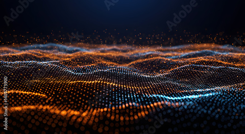 Abstract Particle Wave: Glowing Orange and Blue Digital Landscape