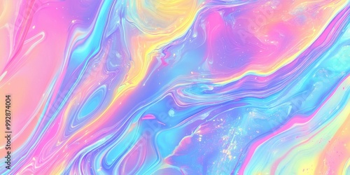 Abstract pastel background featuring a vibrant tie dye print with a holographic texture design illustrated in a 2D cartoon style