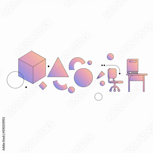 Abstract Pastel Geometric Shapes with Minimalist Desk and Books