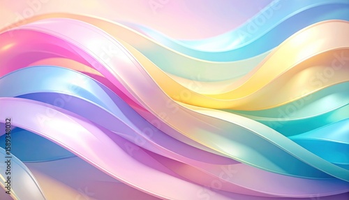 Abstract Pastel Ribbon Gradient Background with Flowing Fluid Waves in Soft Light