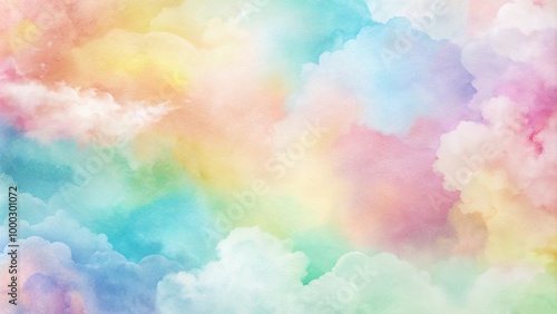 Abstract pastel sky with fluffy clouds, colorful, vibrant, dreamy, and whimsical.