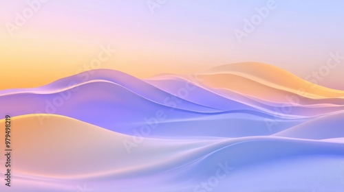 Abstract pastel-colored sand dunes landscape during sunset, showcasing smooth, flowing lines