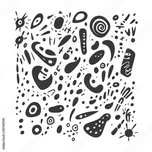 Abstract Pattern of Black and White Hand Drawn Shapes