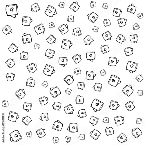 Abstract Pattern of Mugs with Hearts. Cute and Romantic Design