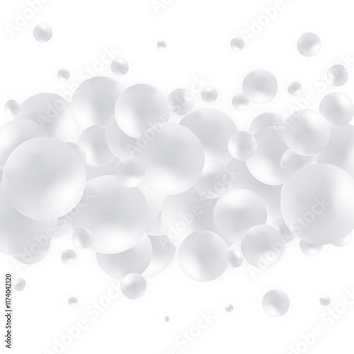 Abstract pattern with glass white balls or precious pearls. Glossy realistic ball. Png