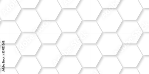 Abstract pattern with hexagonal white and gray technology line paper background. Hexagonal 3d vector grid tile and mosaic structure mess cell. white and gray hexagon honeycomb geometric copy space.