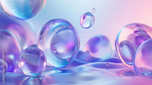 Abstract pc desktop wallpaper background with iridescent large bubbles on a pastel purple background.