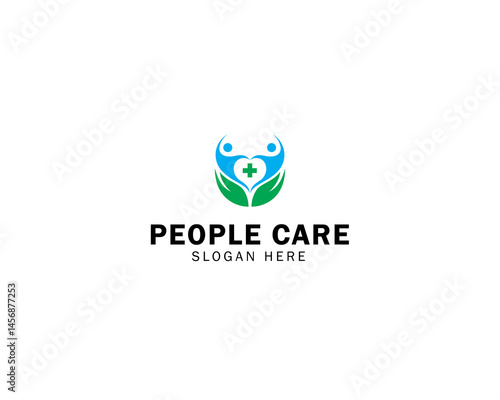 Abstract People Care Logo. Human Icon with Two Hands Symbol. Flat Vector Logo Design Template Element.