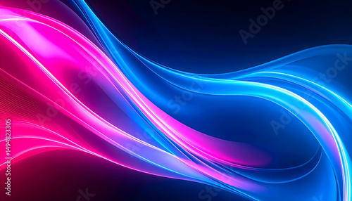 Abstract Pink and Blue Glowing Waves on Dark Background