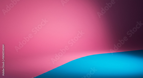 Abstract Pink and Blue Gradient Background. A creative abstract background featuring vibrant pink and turquoise blue liquid-like waves forming a dynamic frame around a central white copy space.