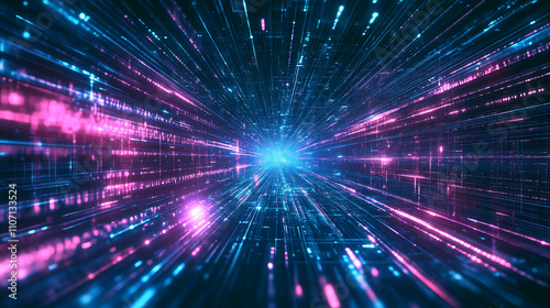 Abstract Pink and Blue laser light beam tunnel background. A futuristic virtual space illuminated by mysterious lights