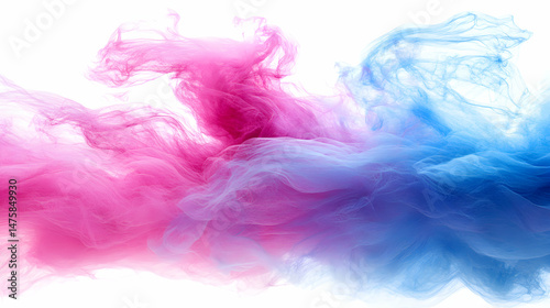 Abstract pink and blue swirling smoke or fabric texture isolated on white background. Perfect for design, backgrounds, or artistic projects.