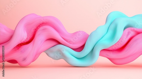 Abstract pink and blue wave pattern on a pink background with interlaced blue elements