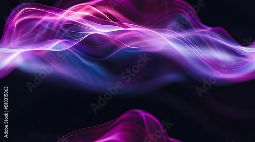 Abstract pink and blue waves of light on a black background