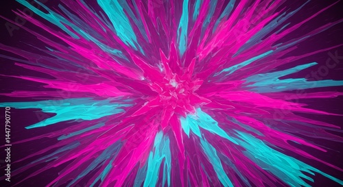 Abstract Pink and Teal Explosion - Vivid pink and teal rays burst outwards from a central point