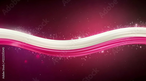 Abstract Pink and White Wavy Lines Background with Sparkling Particles