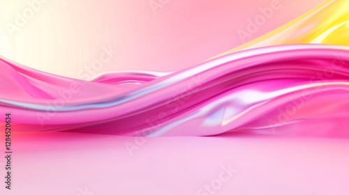 Abstract Pink and Yellow Iridescent Waves: A Dreamy Digital Art