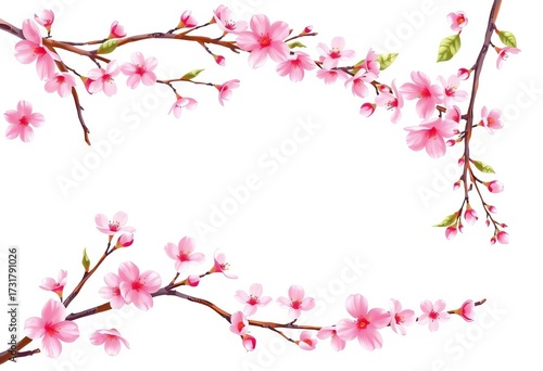 Abstract pink cherry blossom twig, floral frame, spring, sakura, vector illustration, isolated on white background, cherry blossom, vector