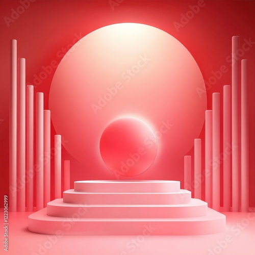 Abstract Pink Geometric Platform with Sphere and Columns.
