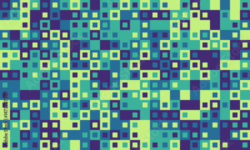 Abstract pixel art background. Vibrant teal, green, and purple squares create a dynamic, textured pattern perfect for websites, presentations, or digital art projects.