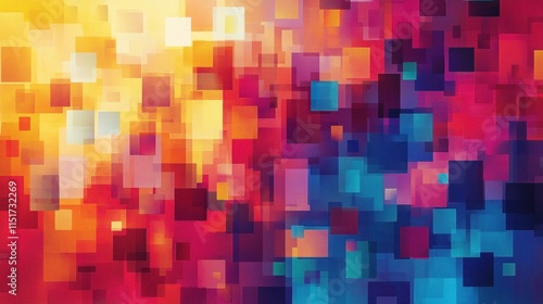 Abstract Pixelated Landscape: A Symphony of Warm and Cool Colors