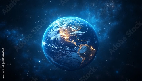 Abstract Planet Earth with Digital Connections and Global Network on a Blue Background