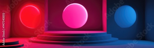 Abstract podium background featuring geometric shapes in pastel pink colors Minimalist 3D rendering with a focus on geometrical elements