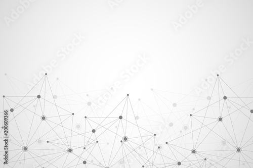 Abstract polygonal background with connected lines and dots. Minimalistic geometric pattern. Molecule structure and communication. Graphic plexus background. Science, medicine, technology concept.