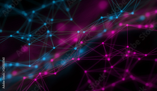 Abstract polygonal neural space background with connection structure. 3d rendering, illustration